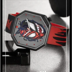 Elle propose un joli cadran de Spiderman et Venom, ses aiguilles sont tout comme l’ensemble de ce modèle : stylĂ© et Ă©purĂ©. Cette montre est sobre et tu pourras la porter tous les jours pour afficher ton fanatisme pour l’univers Marvel. Le bracelet est imprimĂ© du logo Venom et arbore un design de sang qui coule. Procure lĂ toi et dĂ©marque toi de la masse avec ce modèle unique en son genre.